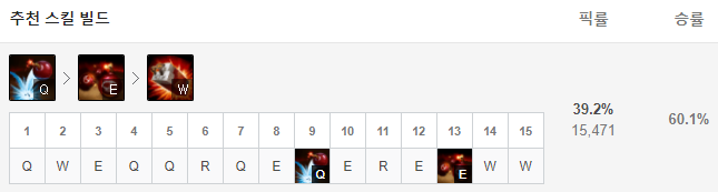 직스는 1레벨에 Q, 2레벨에 W, 3레벨에 E스킬을 찍어준 뒤 이후 4레벨부터는 R-Q-E-W 순서로 스킬을 마스터해주면 됩니다. Q스킬이 포킹스킬이자 직스의 딜링에 있어서 제일 비중이 높은 스킬이기 때문데 궁극기를 제외하고 첫 번째로 마스터해주는 것이죠.