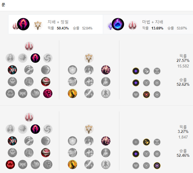 칼바람 벨코즈의 룬은 지배에서 어둠의 수확을 주 룬으로 사용합니다. 후반으로 가면 갈수록 더 강력한 딜링을 낼 수 있게 도와주죠. 하위 룬으로는 비열한 한 방과 사냥의 증표, 궁극의 사냥꾼을 들어주며 보조룬으로는 정밀의 침착과 최후의 일격을 들어주면 되겠습니다.