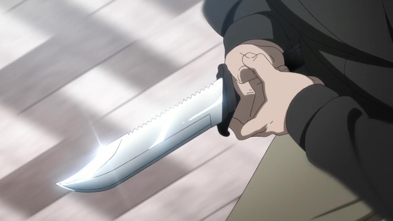 주인공은 후배를 밀치고 대신 자신이 칼을 맞게 되는데요, 딱 봐도 깊숙히 칼이 들어간 것을 알 수 있습니다.