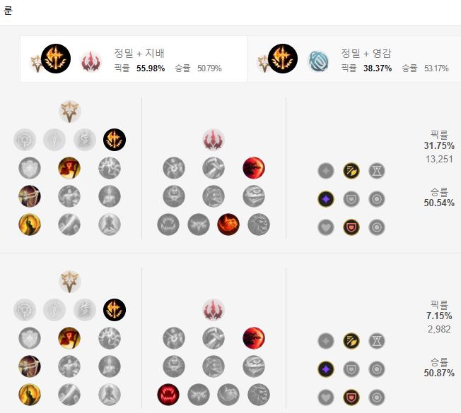 자르반의 핵심 룬은 정밀의 정복자 룬입니다. 자르반 특성상 다른 선택지들에 비해 정복자만큼 괜찮은 룬이 없으며 하위 룬으로는 생존력을 올려주는 승전보와 공격 속도를 올려주는 전설: 민첩함, 딜링을 조금이라도 늘려주는 최후의 일격을 들어줍니다. 보조룬으로는 지배의 돌발일격과 끈질긴 사냥꾼을 들어주는게 좋습니다.
