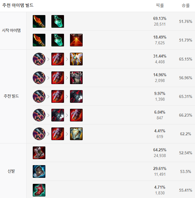 시작은 잉걸볼 칼과 충전형 물약을 구매해줍니다. 이후 첫 번째 코어 아이템으로는 선혈 포식자를 올려주는데 자르반 특성상 E-Q-궁극기로 적에게 진입을 하여 적을 가둬놓고 딜을 넣기 때문에 선혈 포식자와 굉장히 시너지가 좋습니다. 그러고 상대방에 AD딜러가 많으면 판금 장화를, AP딜러가 많으면 헤르메스의 장화를 올려준 뒤 두 번째 코어 아이템으로는 스테락의 도전을 올려줍니다. 자르반의 생존력 향상에 크게 도움이 됩니다. 이후에는 상황을 보고 딜이 더 필요하면 칠흑의 양날 도끼를, 상대 AD가 강력하면 가시 갑옷을, 중요한 한타가 일어날 것 같으면 수호 천사를, AP가 강하면 정령의 형상을, AP와 AD 모두 강하면 가고일의 돌갑옷을 올려주면 되겠습니다.