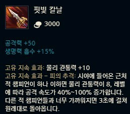 기존의 핏빛 칼날이 일대일에 특화된 아이템이였으나 별로 그렇게 큰 특징을 찾아볼 수 없었으며 올리는 챔피언도 거의 없었기 때문에 라이엇은 핏빛 칼날을 삭제하고 대신 선체파괴자를 내놓았습니다. 선체파괴자는 스플릿 푸쉬에 특화된 아이템으로 아군과 적군이 다른 곳에서 한타를 벌이던 말던 빠르게 스플릿을 하는 유저들에게 잘 맞는 아이템이죠.