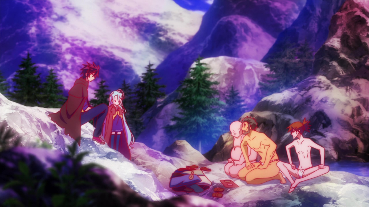 1화만 보면 별로 머리쓰는 것도 없지만 가면 갈수록 머리를 쓰는 게임이 나오게 됩니다. 뭐, 머리를 쓴다고 해도 억지로 끼워맞추는 느낌이 강하지만 그래도 이런 먼치킨적인 두뇌로 상황을 타개하는 모습들을 보면 몰입하게 되더군요. 또 처음에는 남매밖에 없지만 가면 갈수록 다른 여타 등장인물들도 나오고 세계관도 넓혀가는게 인상적이었습니다. 이런 이유로 2기가 나오기를 굉장히 기대하고 있는 애니메이션입니다.