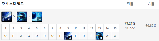야스오는 Q스킬을 먼저 마스터해줍니다. R-Q-E-W 순서로 스킬을 마스터해주면 되는데요, 궁극기를 제외하고 Q스킬은 세 번째 스킬마다 회오리를 날려 적을 띄울 수 있고, 이를 통해 궁극기와 연계할 수도 있죠. 딜링도 준수하고 쿨타임도 짧은 스킬로 먼저 마스터해줍니다.