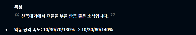먼저 특성 부분입니다. 이번 11.18 패치에서는 특성 부분은 큰 변화 없이 오직 악동 특성만 살짝 버프를 받았습니다. 악동(6), 악동(8) 시너지에서 각각 공격 속도가 10% 더 증가하게끔 변경되었죠. 하지만 지난 패치 이후 악동은 사실 거의 사용되지 않는 덱이며 이는 이번 패치 이후에도 마찬가지일듯 합니다.