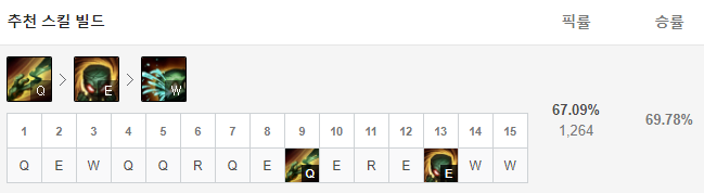서폿 아무무는 1레벨에 Q, 2레벨에 E, 3레벨에 W를 찍어준 뒤 4레벨부터는 R-Q-E-W 순서로 스킬을 마스터해줍니다. 궁극기를 제외하고 Q스킬을 제일 먼저 마스터하는 이유는 찍으면 찍을수록 충전 쿨타임이 감소하여 더 많은 기회를 만들어낼 수 있기 때문이죠. 리워크 이후 충전식으로 변경되었는데 이게 실수로 한 발이 빗나가도 다른 한 발을 조금 있다가 다시 사용할 수 있기 때문에 보다 안정적으로 CC기를 걸 수 있는 장점이 되었습니다.
