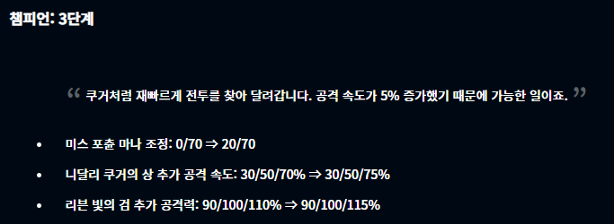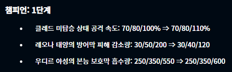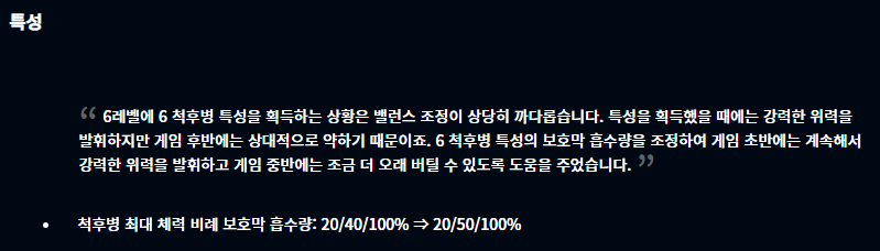 하이라이트를 보면 알 수 있듯이 기존 패치들보다 그렇게 큰 변화가 없습니다. 크게 변경된 점은 애쉬가 상향되었고 쓰레쉬가 너프되었다는 점과 아이템 히라나의 창, 그리고 즈롯 차원문 정도겠네요. 그러면 세부적으로 알아봅시다.