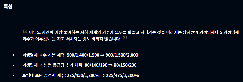 우선 척후병의 경우 척후병(3)와 척후병(9)의 경우 변경 사항이 없지만 척후병(6)에서 효과를 살짝 버프해줬습니다. 또 괴생명체 시너지 역시 괴생명체(4), 괴생명체(5)일때 더욱 강력한 모습을 보이도록 버프되었으며 포병대(4) 시너지 역시 포탄 공격력 계수가 살짝 올라갔습니다.