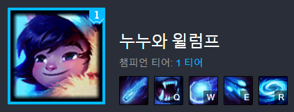 시즌10 초반에는 다른 정글러들에게 밀려 픽률이 굉장히 낮았고, 승률도 낮았지만 한 번의 패치 이후 단숨에 그 능력을 인정받아 1티어 챔피언으로 등극 및 미드 누누도 많이 보이는 등의 쾌거를 이뤄낸 챔피언이죠.