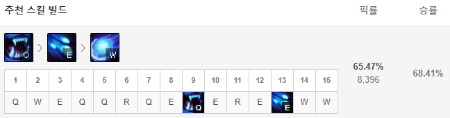 그 이후 3레벨이 되면 E스킬을 찍어주고 그 이후부터는 R-Q-E-W 순으로 스킬을 마스터 해주면 되겠습니다.