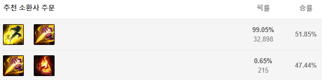 벽을 넘을 수 있는 스킬이 없는 누누에겐 점멸이 꼭 필요하구요, 또 정글인데 강타를 안 들 수가 없겠죠?