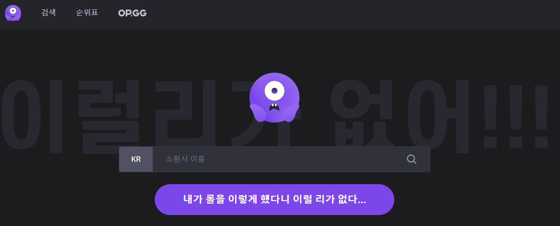 소개해드리는 사이트는 이럴 리가 없다 라는 사이트인데요, 주소는 ifi.gg(클릭)로 링크를 들어가보면 위와 같은 창이 나옵니다. 위의 창에서 본인이 사용하고 있는 게임 내의 닉네임을 적은 후 검색을 하시면 되는 간단한 사이트입니다. 한번 예시로 제 롤 닉네임을 검색해보겠습니다.