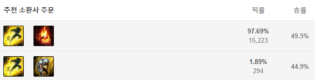 먼저 파이크는 점멸과 점화를 들어줍니다. 파이크 자체도 딜링이 약하지 않은 편이라 한번 적 원딜을 끌고 E스킬로 스턴을 제대로 넣었다면 조금 더 확실한 킬각을 위해 점화를 사용해주면 좋습니다.