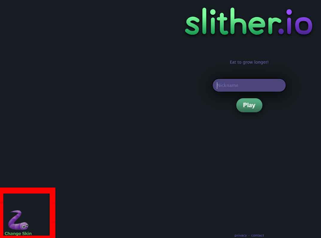 또한 게임을 시작하기 전 좌측 하단에 있는 Change Skin 부분을 클릭하면 자신이 사용할 지렁이의 형태를 변경할 수도 있습니다. 이 게임을 SNS에 공유하게 되면 사용할 수 있는 스킨의 수는 더 많아지구요.