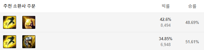 서폿 제라스의 스펠은 점멸과 방어막입니다. 상대팀에 제드, 앨리스, 탈론, 카밀 등 강력한 암살자나 브루저가 많은 경우에는 종종 탈진을 들기도 하지만 제라스는 보통 사거리가 길기 때문에 거리를 잘 안주는 플레이를 하며 방어막을 들어주는게 더 좋습니다.