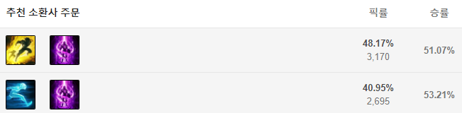 기본적으로 점멸과 텔레포트를 들어줍니다. 어차피 나서스는 룬에서 영감 - 봉인 풀린 주문서를 들어 스펠을 유연하게 변경하기 때문에 초반에는 이렇게 드는게 제일 안정적입니다.