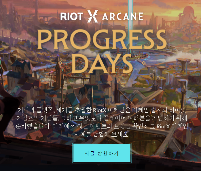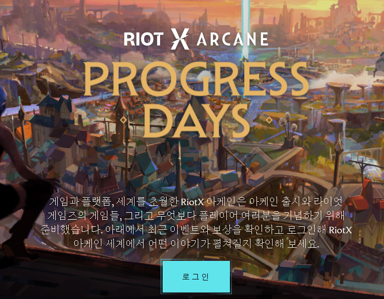 먼저 라이엇 이벤트 페이지(https://riotxarcane.riotgames.com/ko-kr/)로 들어가줍니다. 위의 왼쪽 이미지처럼 이벤트 페이지가 나오는데 거기서 로그인을 눌러 완료해주세요.