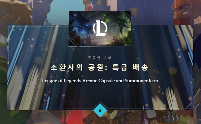 이렇게 이번 시간에는 롤 아케인 이벤트로 아케인 캡슐과 전설이 알을 얻는 방법을 알아보았습니다. 지도의 다른 구역에서는 또 다른 라이엇 게임들의 보상을 얻을 수 있습니다만, 저는 롤과 롤토체스만 하기 때문에 다른 지역은 그냥 패스했습니다. 그러면 이번 포스팅은 여기서 마무리하도록 하고 다음번에는 또 다른 글로 다시 찾아오도록 하겠습니다. :)