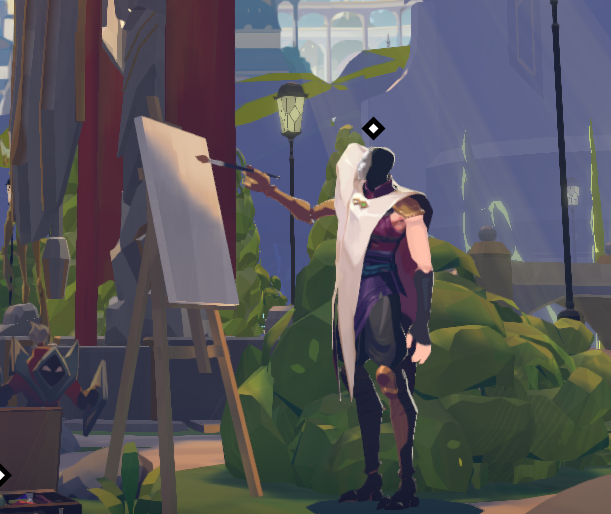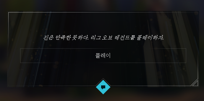 화면을 드래그하여 오른쪽으로 가다 보면 그림을 그리고 있는 진을 볼 수 있는데 눌러서 대화를 쭉 하다보면 리그 오브 레전드를 플레이하자라는 임무가 나옵니다. 그러고 플레이 버튼을 누르면 리그 오브 레전드 공식 홈페이지가 열리죠. 그냥 바로 닫아주고 다시 이벤트 페이지로 돌아와서 진에게 말을 걸고 플레이했다고 말한 뒤 선택지에서 아무거나 눌러주고 대화를 마치면 상점 주인에게 가라는 임무가 생깁니다.
