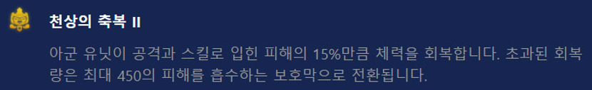 사미라에게 피바라기를 주지 않기 때문에 피흡을 위해 사교계를 넣고, 스포트라이트 구역에 올려놓는 것입니다. 이런 이유로 사교계 관련 증강체를 뽑아 사교계 자리 대신 제국 챔피언을 더 넣어 제국(5) 시너지를 맞출 수도 있고, 아니면 사미라의 시너지중 하나인 도전자 시너지인 챔피언을 넣어 도전자(2) 시너지를 만들어 줄 수도 있습니다. 그 외에도 천상의 축복으로 피흡량을 더 해줄 수도 있는데요, 가장 좋다고 생각되는 증강체는 제국 시너지 특화 증강체인 몰아주기입니다.