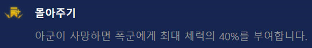 사미라에게 수은, 무한의 대검, 푸른 파수꾼을 만들어주는게 좋습니다. CC기를 무시하며 딜링을 넣을 수 있고 푸른 파수꾼으로 스킬을 빠르게 돌리면서 딜을 넣습니다. 또 사교계 스포트라이트 자리에 올려놓음으로서 사교계(3) 효과로 어느정도 피흡이 가능해진다는 점도 좋구요. 그 외에는 사이온에게 무한의 대검, 보석 건틀릿을 챙겨주고 두 거신에게 적당히 탱템을 몰아주는게 좋습니다.