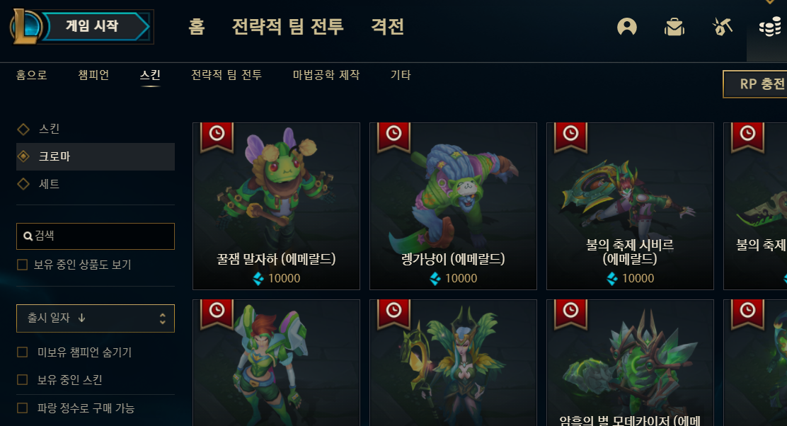 기본적으로는 상점에서 RP 또는 RP + 파랑정수(BP)로 구매할 수 있고 이벤트성으로 파랑 정수 상점이 열릴 때에면 파랑 정수(BP)만으로도 특정 크로마들을 구입 할 수 있습니다. 현재는 파랑 정수 상점이 열려있는 상태니 확인해주시면 되겠죠?