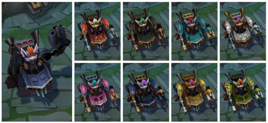 크로마에 대해 설명드리면 위의 이미지처럼 특정 스킨을 추가로 꾸밀 수 있는 아이템입니다. 대부분 단순히 해당 스킨의 색깔이 변경됩니다.