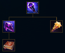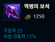 하위 아이템은 역병의 보석과 마법의 방출봉입니다. 역병의 보석은 증폭의 고서의 상위 아이템이며 주문력 25와 마법 관통력 15%를 제공하기에 빌드를 올리면서 딜로스가 나지 않습니다.