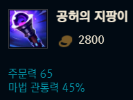 기본적으로 주문력 65와 마법 관통력 45%를 제공하는 아이템입니다. 마법 관통력을 제공하는 아이템이 마법사의 신발, 이번에 새로 나온 그림자불꽃밖에 없고 기껏해야 신화 아이템의 추가 효과로 전설급 아이템에 마법 관통력을 추가해주는 방법밖에 없기에 그만큼 좋은 아이템입니다.