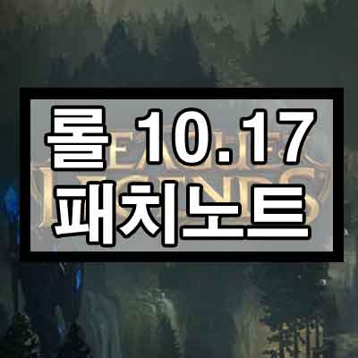 이번 포스팅은 롤 10.17 패치노트의 내용을 정리해보는 시간을 가져볼텐데요, 이번 패치는 라이엇 측에 의하면 일반적인 패치보다 추가 패치에 가깝다고 하며 거의 대부분 변경사항은 간단한 밸런스 조정이라고 합니다. 그에 따라 10.17 패치에는 신규 스킨이나 콘텐츠가 추가되지 않는다고 합니다. 한번 어떤 내용들이 변경되었는지 패치노트를 살펴보러 가봅시다.