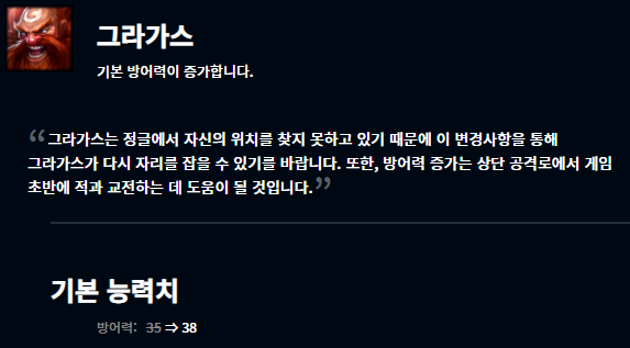 | 그라가스 | 기본 방어력 35 -> 38 |