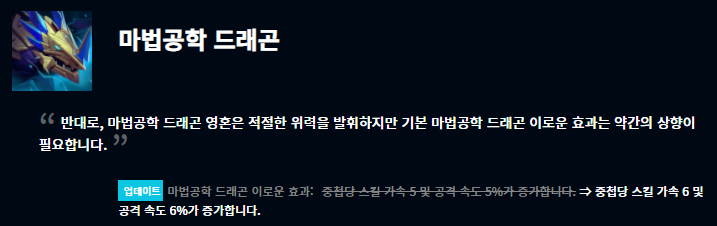 새로 추가된 드래곤인 화학공학 드래곤, 마법공학 드래곤이 변경되었습니다. 주로 처치했을 때 등장하는 효과들이 버프, 너프되었습니다.