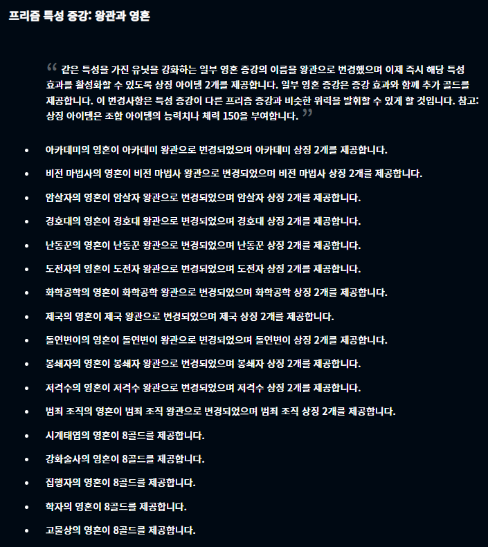시너지 부분은 화학공학을 제외하곤 크게 변경되지 않았으며 대부분 수치만 조정해준 느낌입니다.