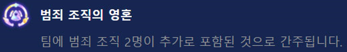 기본적으로 덱을 완성시켰을 때 챙길 수 있는 시너지는 포근(1), 학자(4), 강화술사(2), 고물상(2), 범죄조직(3), 사교계(1), 암살자(2)입니다. 여기에 이제 증강체를 이용해 덱을 강화할 수 있으면 학자(6), 강화술사(3, 4), 암살자(4), 범죄조직(5) 등 시너지를 노려주면 됩니다.