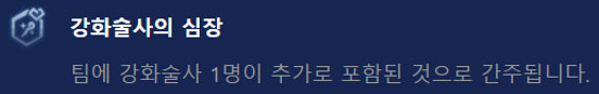 기본적으로 덱을 완성시켰을 때 챙길 수 있는 시너지는 포근(1), 강화술사(3), 경호대(2), 사교계(1), 시계태엽(2), 아카데미(2), 저격수(2), 학자(2)입니다. 증강체나 상징을 활용하여 강화술사(4, 5), 사교계(2,3), 시계태엽(4), 저격수(4), 학자(4) 등 시너지를 강화해주면 좋습니다.