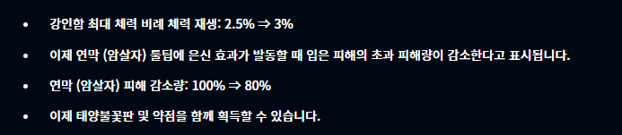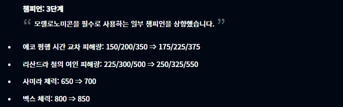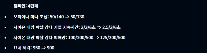 특성 문장을 선택하는 증강체들에서 선택시 획득하는 챔피언이 없어지거나, 변경되거나 추가되었습니다. 그렇게 크게 변경된 점들은 없으며 적절하게 패치되었다고 생각됩니다.
