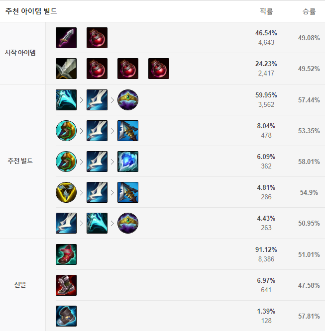 현재 가장 유행하고 있는 이즈리얼의 템트리는 첫 코어 아이템으로 정수 약탈자를 올린 뒤 마나무네, 부서진 여왕의 왕관을 올리는 템트리입니다. 부서진 여왕의 왕관은 주문력 아이템이지만 스킬들에 AP계수가 붙어있는 이즈리얼에게는 잘 맞는 아이템입니다.