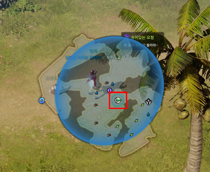 두 번째 위치로 이동해주시면 마찬가지로 숨어있는 요정이 다시 흥얼거리는 것을 볼 수 있습니다. 마찬가지로 요정이 흥얼거린 곳으로 다가가 'G'키를 누르면 상호작용을 할 수 있고, 이어서 질문에 답해주면 되겠습니다.