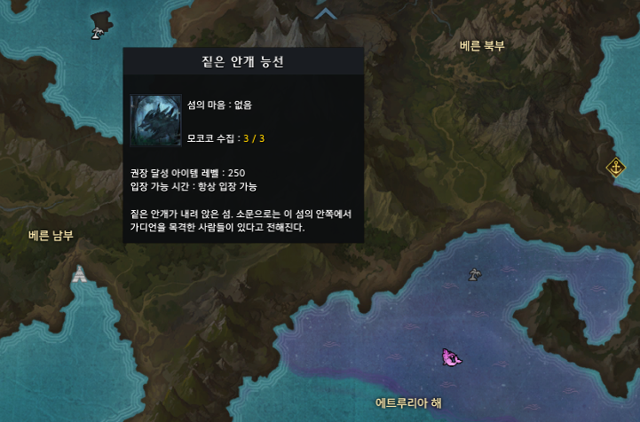 로스트아크 섬들 중 하나인 짙은 안개 능선은 상시 입장 가능한 섬 중 하나로 섬의 마음은 존재하지 않으며 모코코 씨앗은 총 3개가 존재합니다. 공명의 노래, 숲의 미뉴에트 등 특수 조건이 필요하지 않기 때문에 쉽게 모코코 씨앗을 모을 수 있습니다.