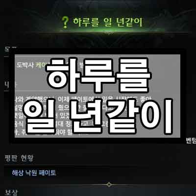 이번 시간에는 로스트아크 에포나 퀘스트 중 '하루를 일 년같이' 퀘스트에 대해서 알아보도록 하겠습니다.