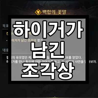 저는 해당 구역에서 찾았습니다만, 하이거의 조각상이 있는 위치는 한 군데가 아닌 여러 군데입니다. 에포나 의뢰에서도 '못다한 여행'이라는게 있는데 해당 퀘스트 역시 하이거가 숨겨놓은 작은 천사상을 찾는 퀘스트입니다. 조각상의 정확한 위치가 정해져 있는 것이 아닌 여러 군데에 동시에 있기 때문에 외곽 위주로 쭉 둘러보다 보면 금방 찾으실 수 있습니다.