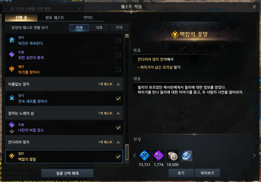 백합의 꽃말이라는 베른 남부 서브 퀘스트가 있습니다. 해당 연계 퀘스트는 하이거의 저택을 여러 번 왔다갔다 해야하는 이벤트인데, 문제는 하이거의 저택 주변에 스퀘어홀이 전혀 없다는 것이죠. 그만큼 동선이 길며 매우 귀찮습니다. 그러므로 여러분들은 비프로스트를 활용하시길 바라며, 한번 백합의 꽃말 퀘스트에 대해 알아보도록 합시다.