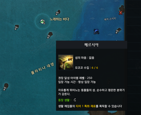 로스트아크 섬들 중 하나인 메르시아는 상시 입장 가능한 섬 중 하나로 섬의 마음은 존재하며 모코코 씨앗은 총 6개가 존재합니다. 숲의 미뉴에트가 필요하며 없는 경우에는 메르시아에 있는 다른 유저들이나 혹은 지역 채팅으로 도움을 갈구하면 종종 도와주는 사람들이 있습니다. 다른 섬들에 비해 모코코 씨앗이 여섯 개로 많은 편입니다.