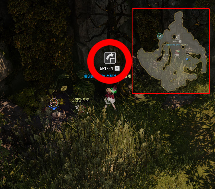위의 지점으로 가게 되면 올라가기(G) 행동이 활성화됩니다. 거기에서 G키를 눌러 상호작용을 하면 5번, 6번 모코코가 있는 위치로 이동할 수 있습니다.
