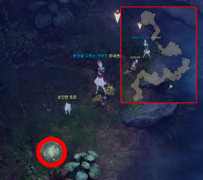 2번 모코코는 미니맵 기준 3시 방향에 위치해 있습니다.