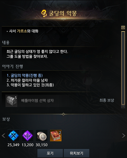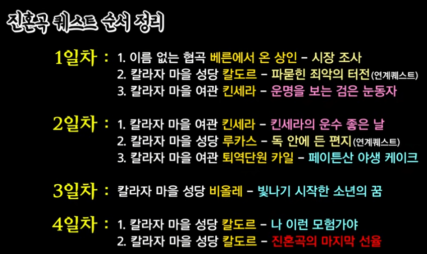 이 퀘스트가 까다로운 이유는 하루만에 다 클리어할 수 없다는 점입니다.