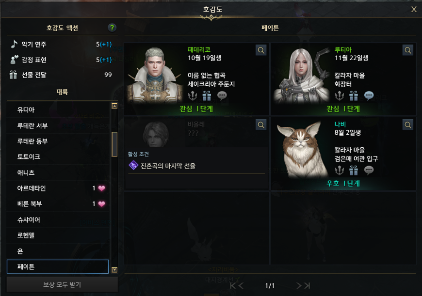 그러고 진짜 다음 날이 되어야 비올레에게 제대로 된 케이크를 전해주며 생일을 축하해주고, 이후 굴딩의 악몽이라는 새로운 퀘스트가 다시 생겨납니다. 문제는 여기서 끝이 아니라 이 연계 퀘스트를 다 깨고 나서도, 또 다음 날 다시 '나 이런 모험가야' 퀘스트가 새로 추가된다는 것입니다. 그렇게 '나 이런 모험가야' 퀘스트를 클리어하고 나면 그때서야 비올레의 호감도를 활성화할 수 있는 퀘스트인 '진혼곡의 마지막 선율' 퀘스트를 수행할 수 있습니다.
