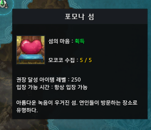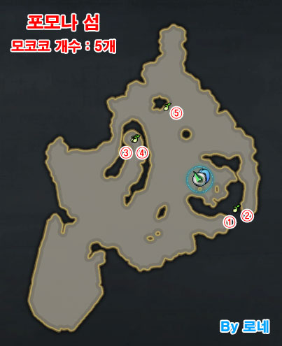 로스트아크 섬들 중 하나인 포모나 섬은 상시 입장 가능한 섬 중 하나로 섬의 마음은 존재하며/존재하지 않으며 모코코 씨앗은 총 5개가 존재합니다. 공명의 노래, 숲의 미뉴에트 등 특수 조건이 필요하지 않기 때문에 쉽게 모코코 씨앗을 모을 수 있습니다.