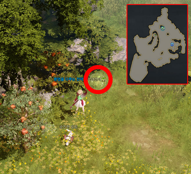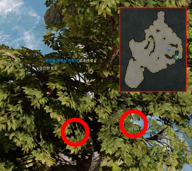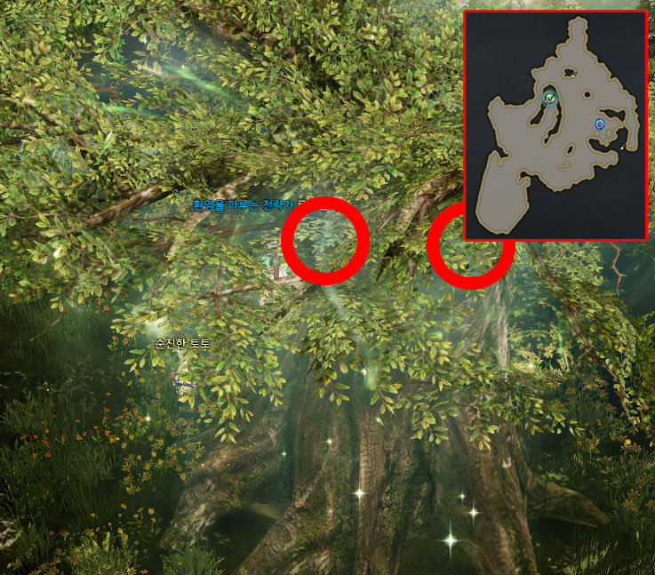 미니맵 위치로 가주시면 커다란 나무가있습니다. 나무 뒤쪽으로 이동하시면 왼쪽, 오른쪽에 하나 씩 총 두 개의 모코코 씨앗이 숨겨져 있습니다.