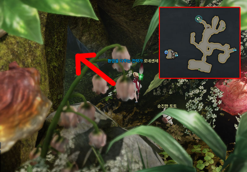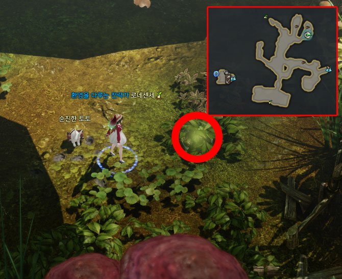 미니맵의 해당 위치로 이동하면 저렇게 풀 사이에 숨어있습니다.